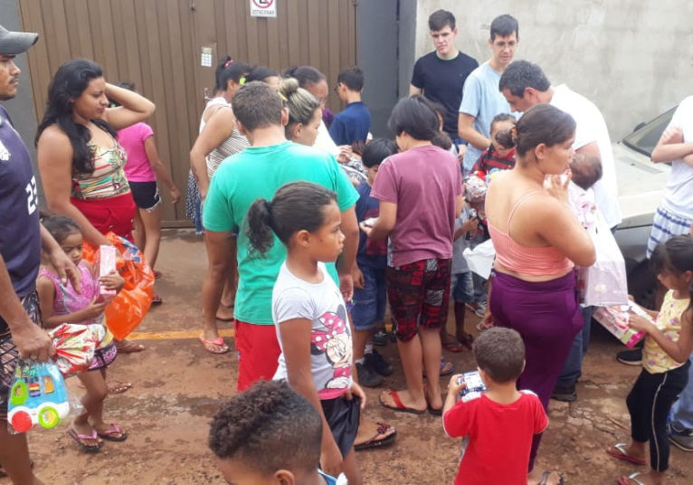 Distribuição de presentes no Jardim Progresso.