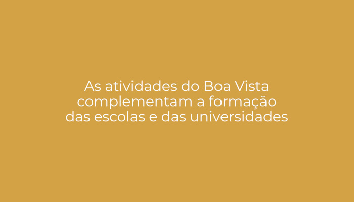 O Centro Cultural Boa Vista oferece formação humana integral para estudantes do ensino médio, universitários e jovens profissionais, como também para seus pais, ajudando-os a adquirirem as virtudes próprias de homens competentes, generosos e responsáveis, em uma mentalidade de serviço à família e sociedade onde se desenvolvem. Independente da fé que a pessoa professa, cada um é estimulado a aprofundar e descobrir um sentido mais profundo para sua vida.